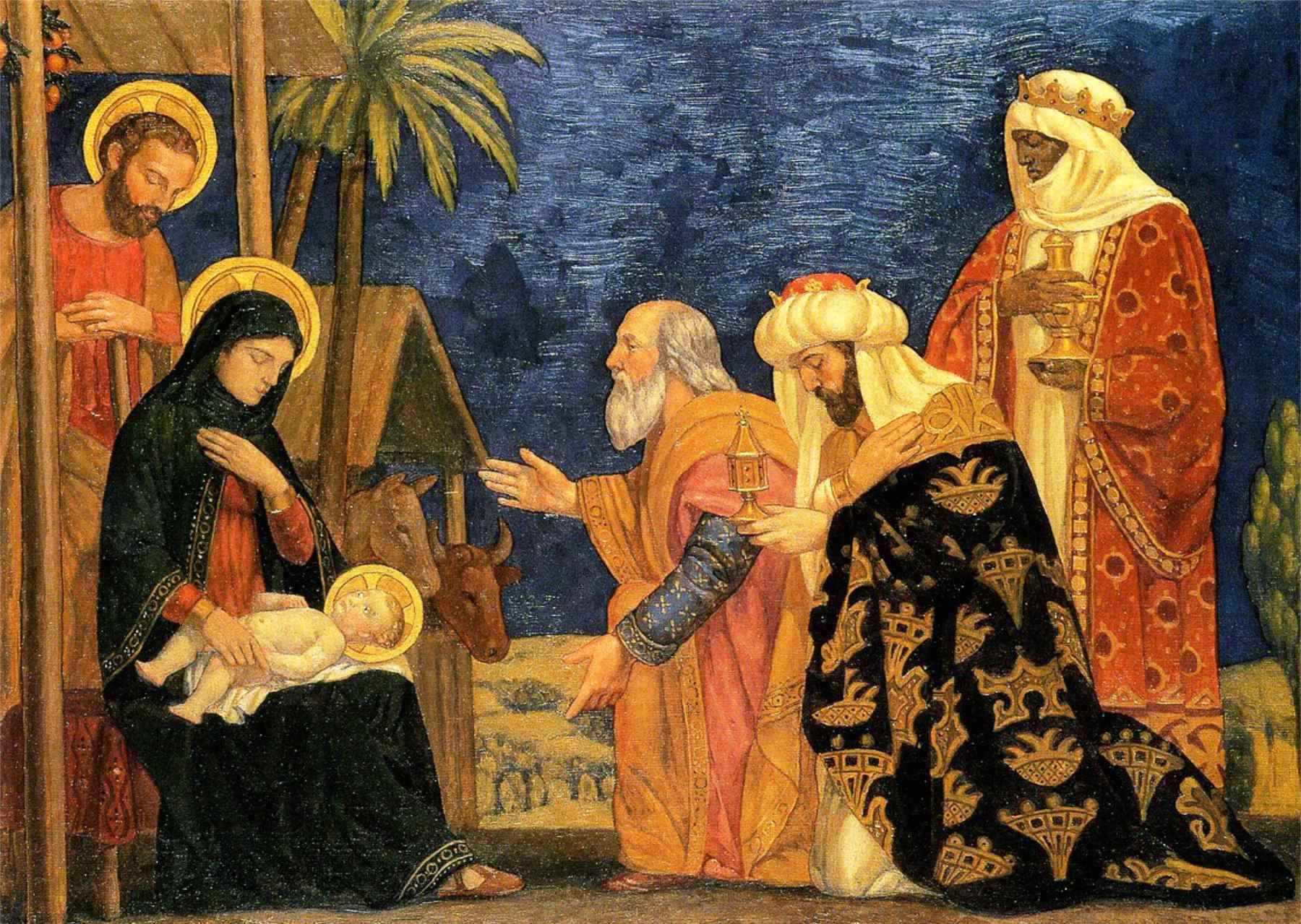 On entering the house, [the wise men] saw the child with Mary his mother; and they knelt down and paid him homage. Then, opening their treasure chests, they offered him gifts of gold, frankincense, and myrrh.